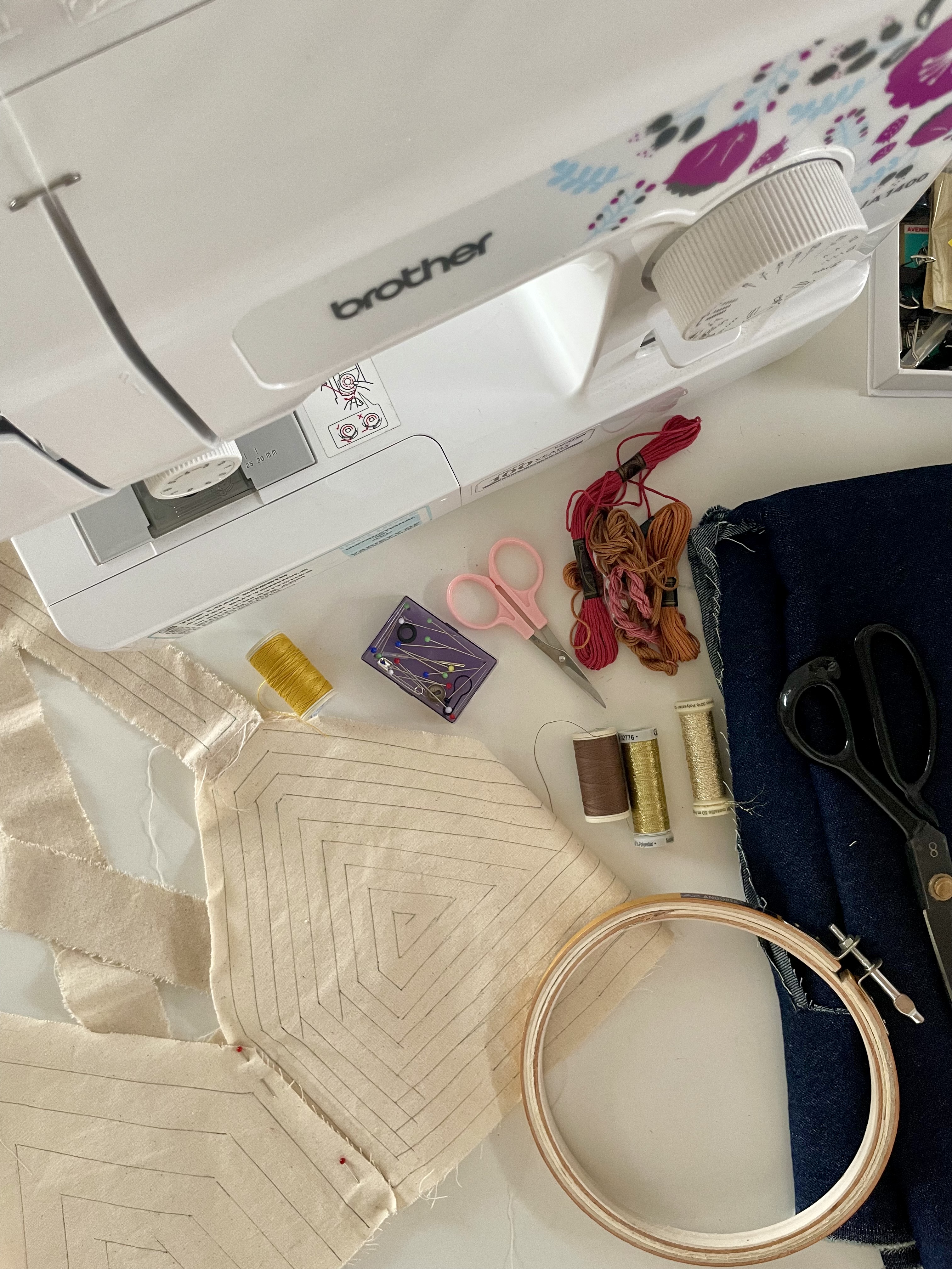 We'll go through 4 phases, each building on the last, helping you develop confidence in clothing design, quilting, embroidery, applique, colour, print, texture, and drafting techniques so that by the end, you’ll have a one-of-a-kind piece you’re proud to wear, and the knowledge to create pieces with personality forevermore!